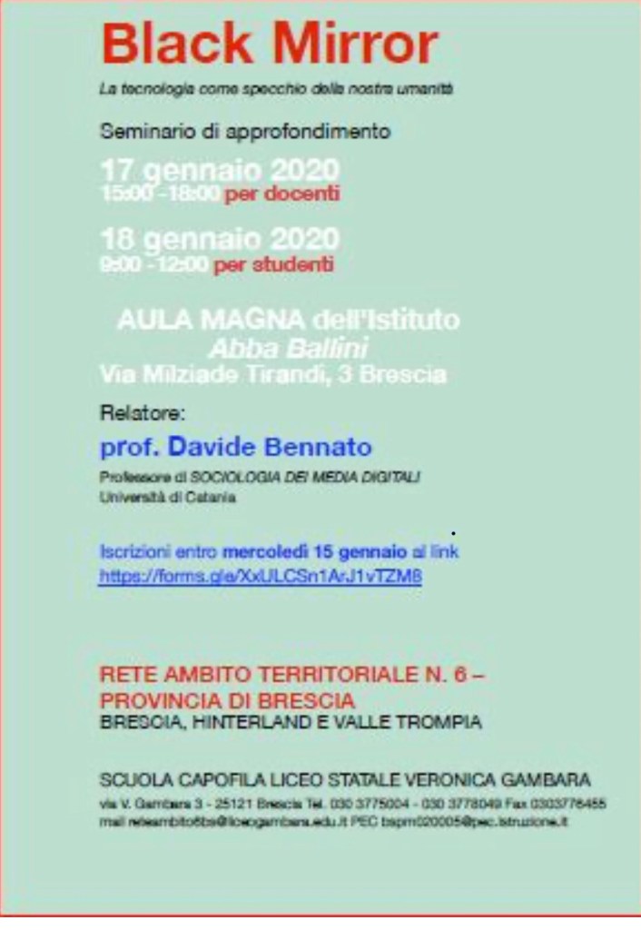 Per iscrizioni (entro mercoledì 15 gennaio 2020)