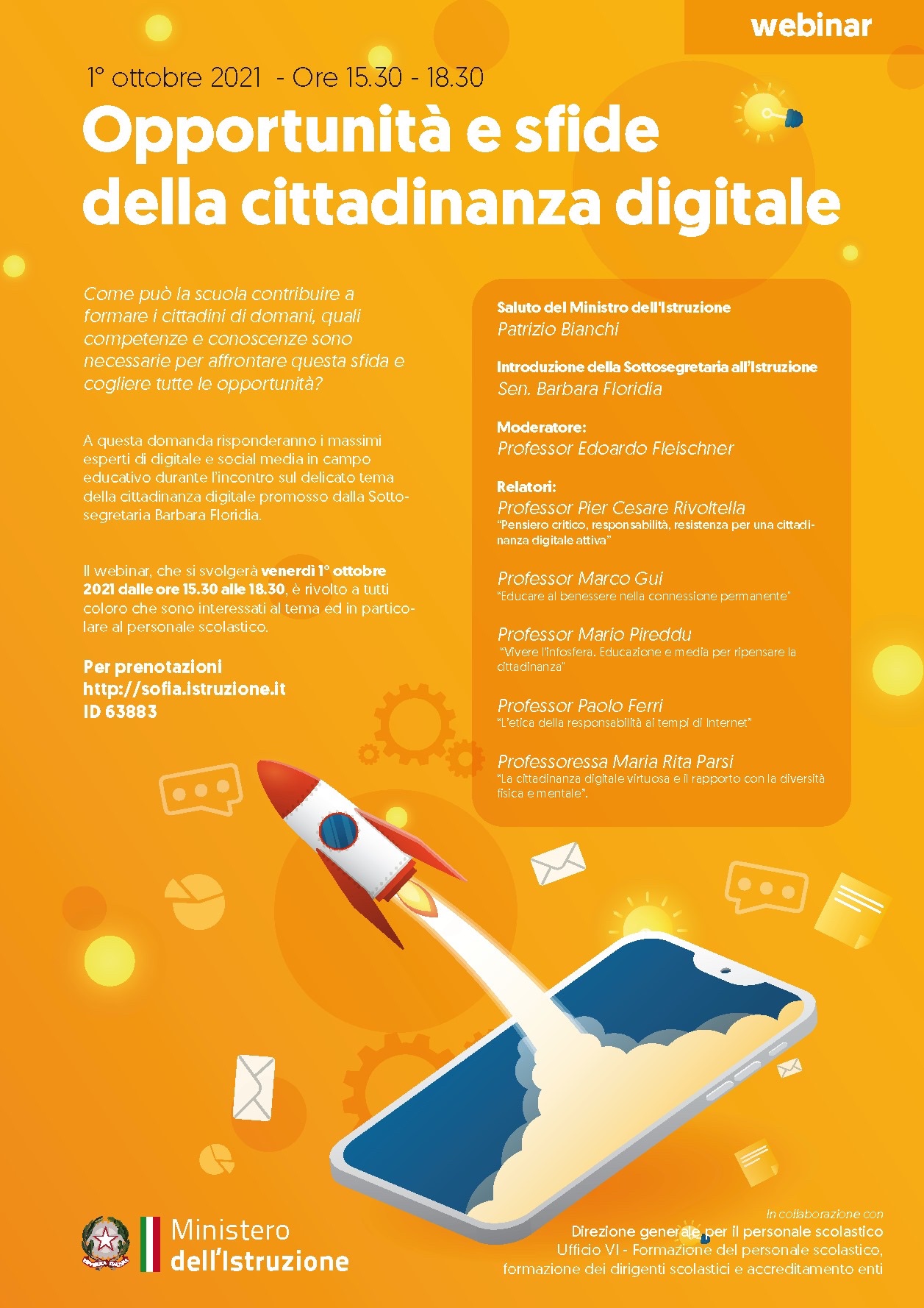 Abstract: Come può la scuola contribuire a formare i cittadini di domani? Quali competenze e conoscenze sono necessarie per affrontare questa sfida e coglierne tutte le opportunità? Queste le domande cui risponderanno alcuni tra i massimi esperti di digitale e social media durante l’incontro sul tema della cittadinanza digitale organizzato dalla Sottosegretaria Barbara Floridia e aperto da un intervento del Ministro dell’Istruzione Patrizio Bianchi.