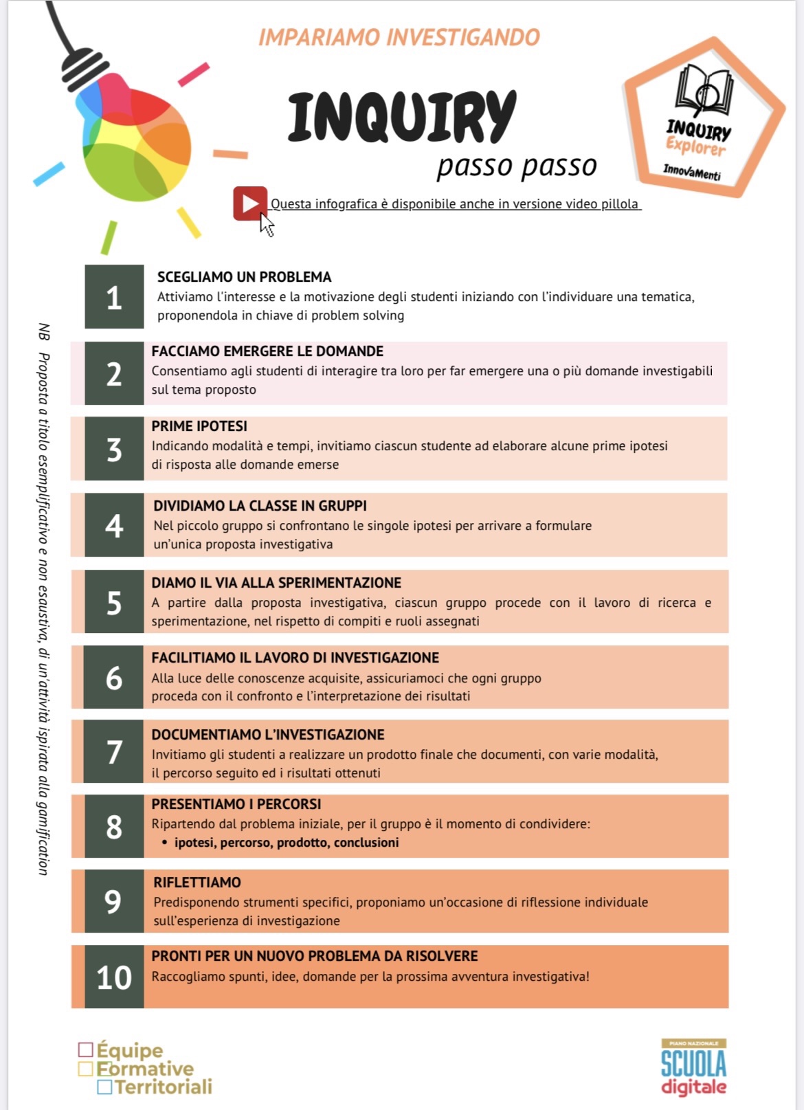 In questa pagina i materiali didattici utili ad intraprendere la SFIDA INQUIRY con la classe, esplorare la metodologia e conquistare il badge EXPLORER: