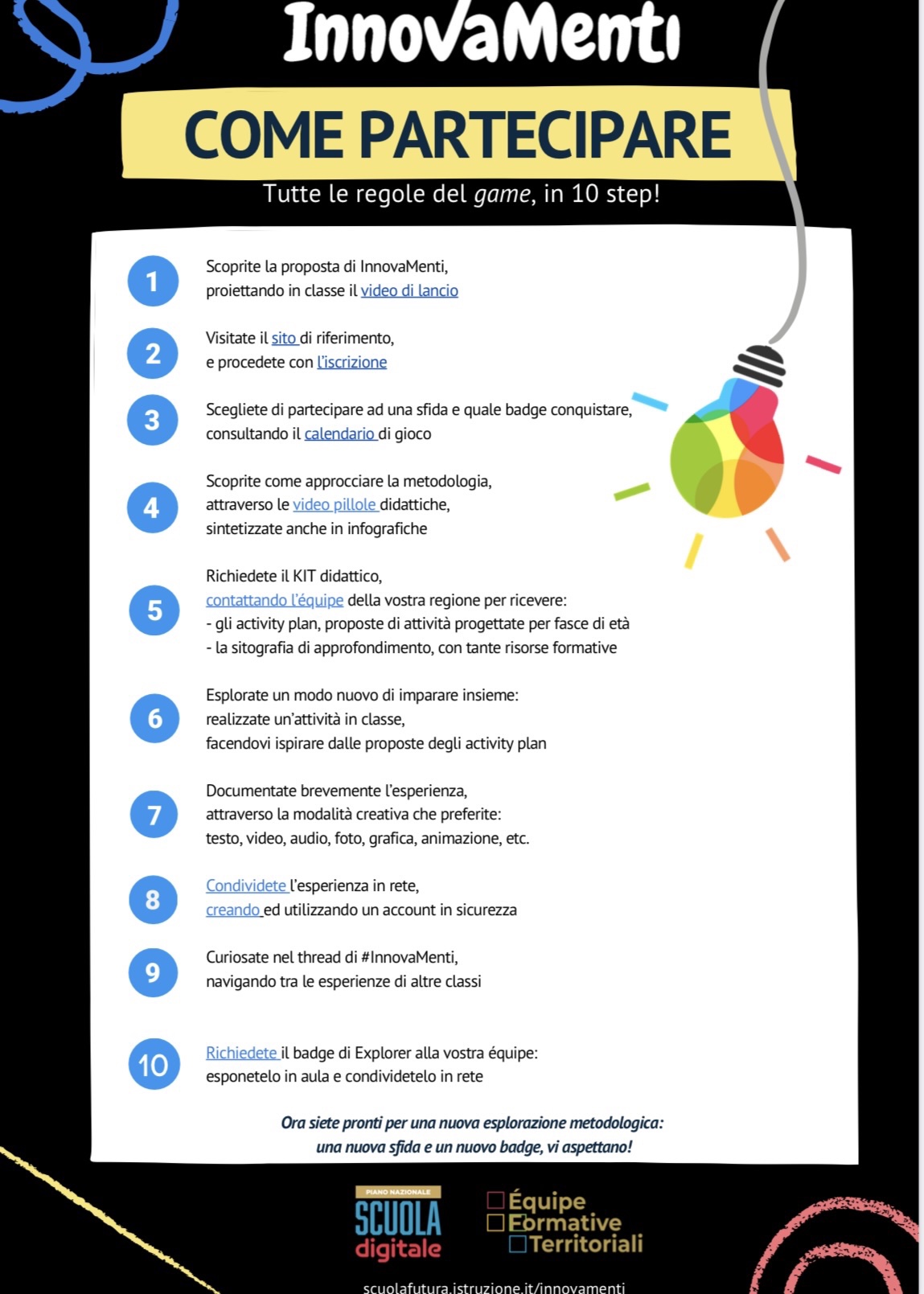 E’ partito il progetto nazionale dedicato alla diffusione delle metodologie didattiche innovative, rivolto a docenti e alunni dalla scuola dell’infanzia alla secondaria di secondo grado, curato dalle Équipe formative territoriali, nell’ambito delle azioni del PNSD.