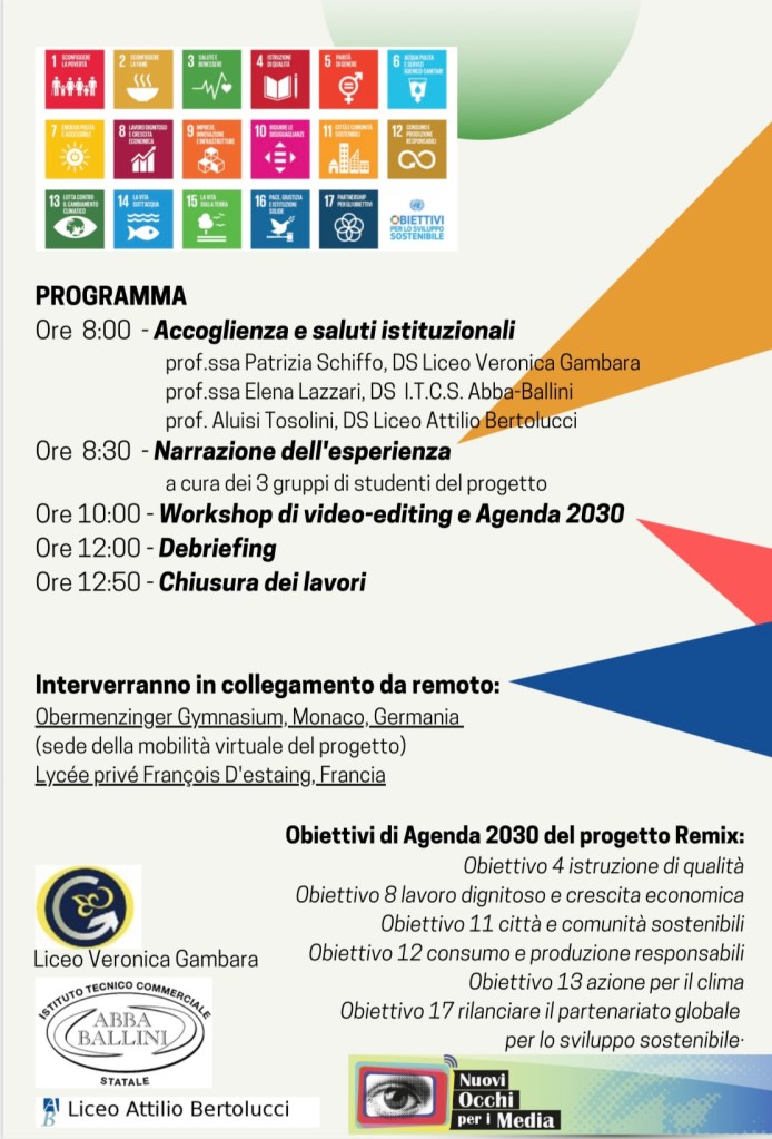 Il progetto, ideato da Marzia Vacchelli (Liceo Veronica Gambara, scuola capofila) e da Chiara Medini ( NeXt) in seguito ad Avviso PNSD per la realizzazione di azioni di potenziamento delle competenze degli studenti nell’ambito del Piano Nazionale Scuola Digitale è stato coordinato da Marzia Vacchelli e ha consentito alle studentesse e agli studenti del Liceo Musicale, Linguistico e Scienze Umane “Veronica Gambara” (BS), dell’ITCS “Abba-Ballini” (BS), del Liceo “Attilio Bertolucci” di Parma di svolgere le seguenti attività: