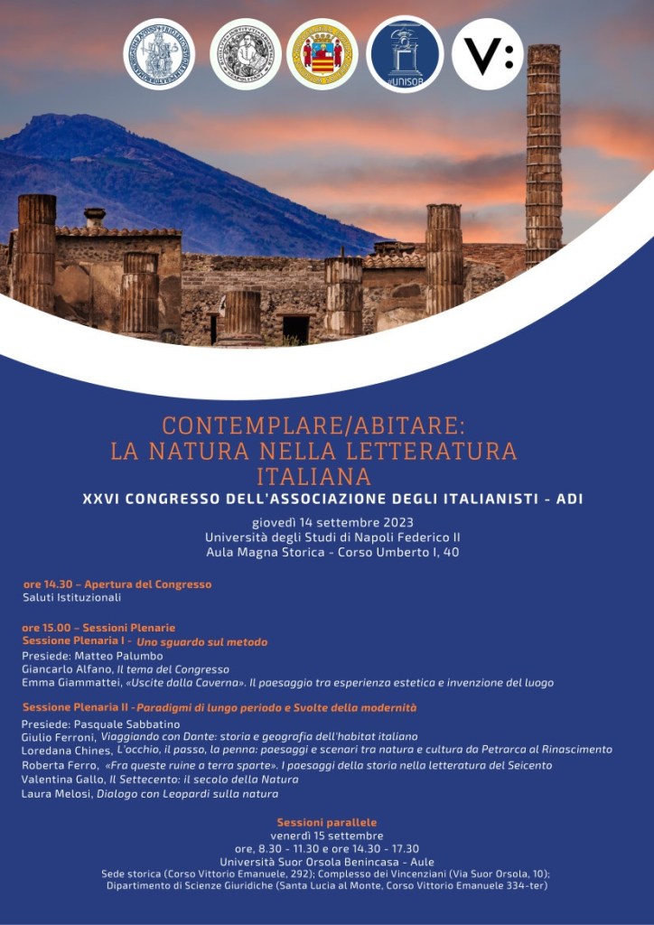 Sono disponibili online gli Atti del XXVI Congresso dell’AdI Contemplare/Abitare: la natura nella letteratura italiana (Napoli, 14-16 settembre 2023)